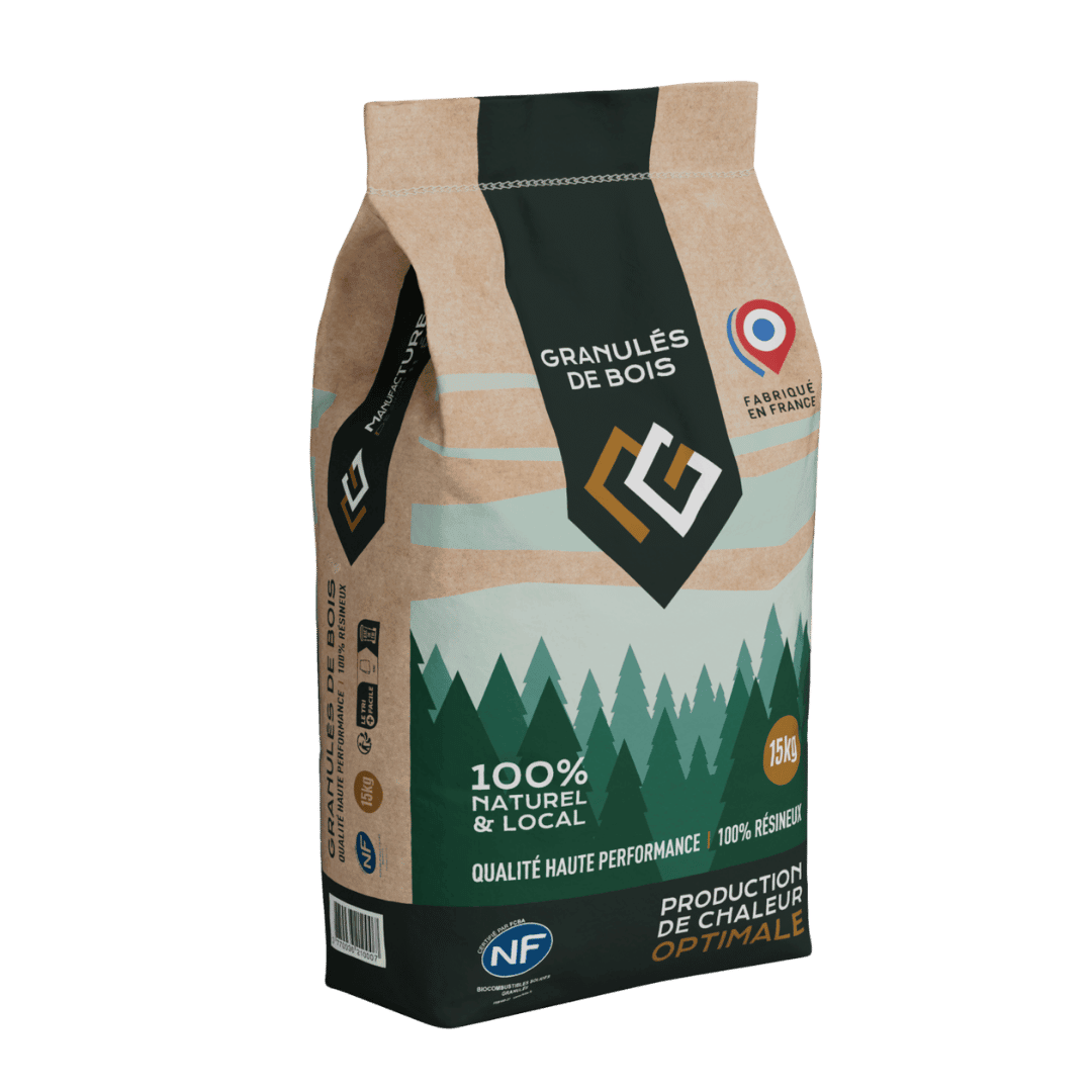 | Origine France | Type de bois 100% résineux | PCI ≥ 16,5 MJ/kg | Certification NF | Diamètre 6 mm |